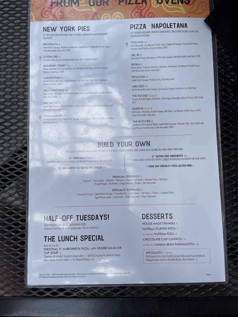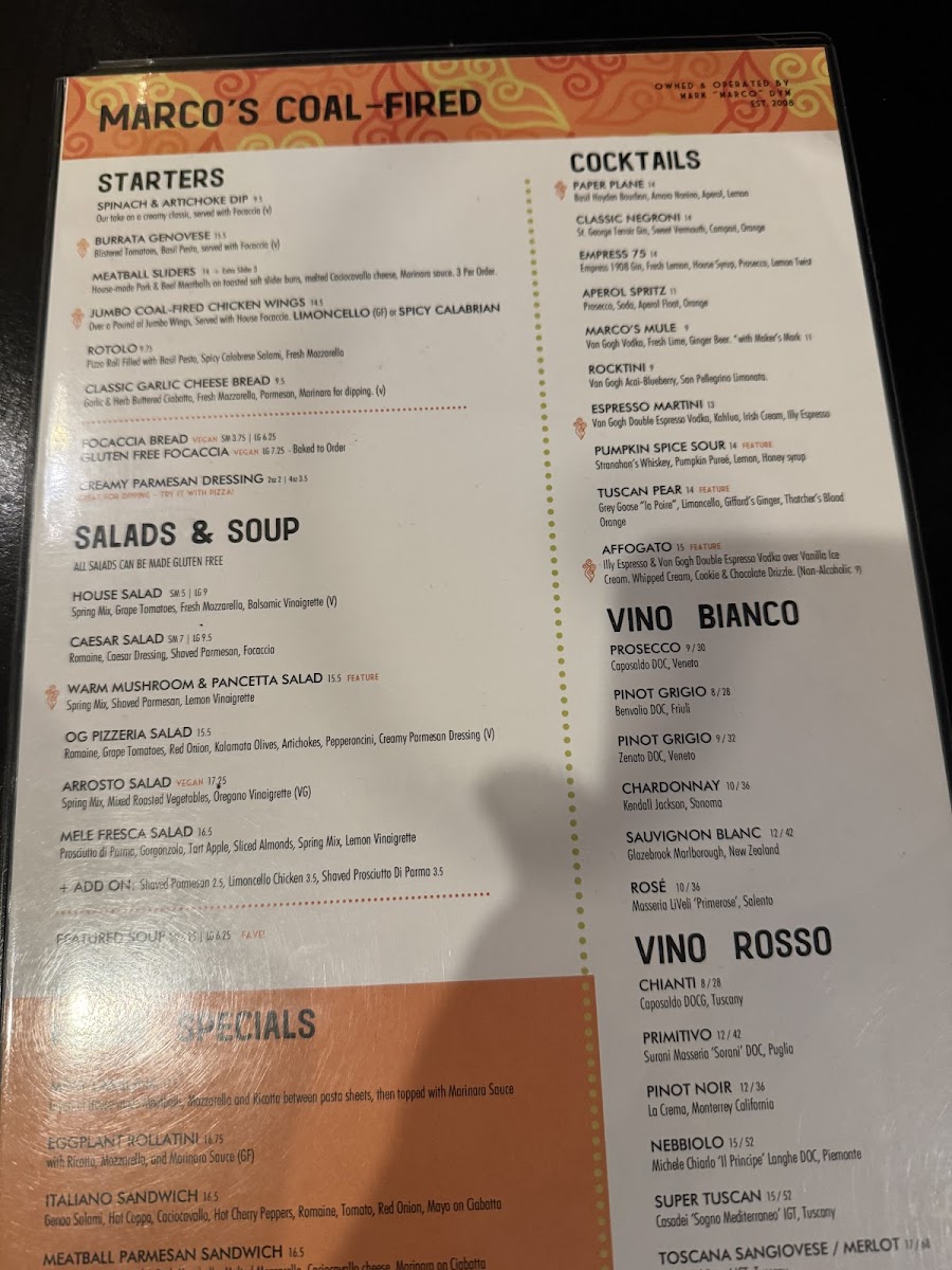Now, let’s talk about the ambiance. Despite the humble exterior, stepping inside Marco's reveals a cozy yet vibrant space with beautiful murals that resonate with the energy of the city. There’s ample seating both indoors and on the outdoor patio, equipped with gas heating lamps, making it an inviting space year-round. As one pleased patron, Nia, Lens Go, aptly noted, “Plenty of indoor and outdoor seating. Beautiful murals on the outdoor patio.” This speaks to the restaurant's effort to create a comfortable dining experience that feels both casual and adorned.